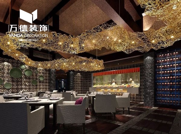全日制餐厅--宛如金龙在空中飞腾,吊灯的造型和色彩,呈现出浓郁的中国韵味